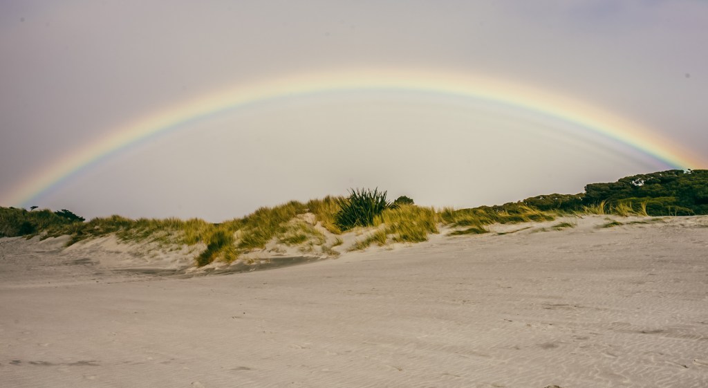 The beach was adorned with a rainbow