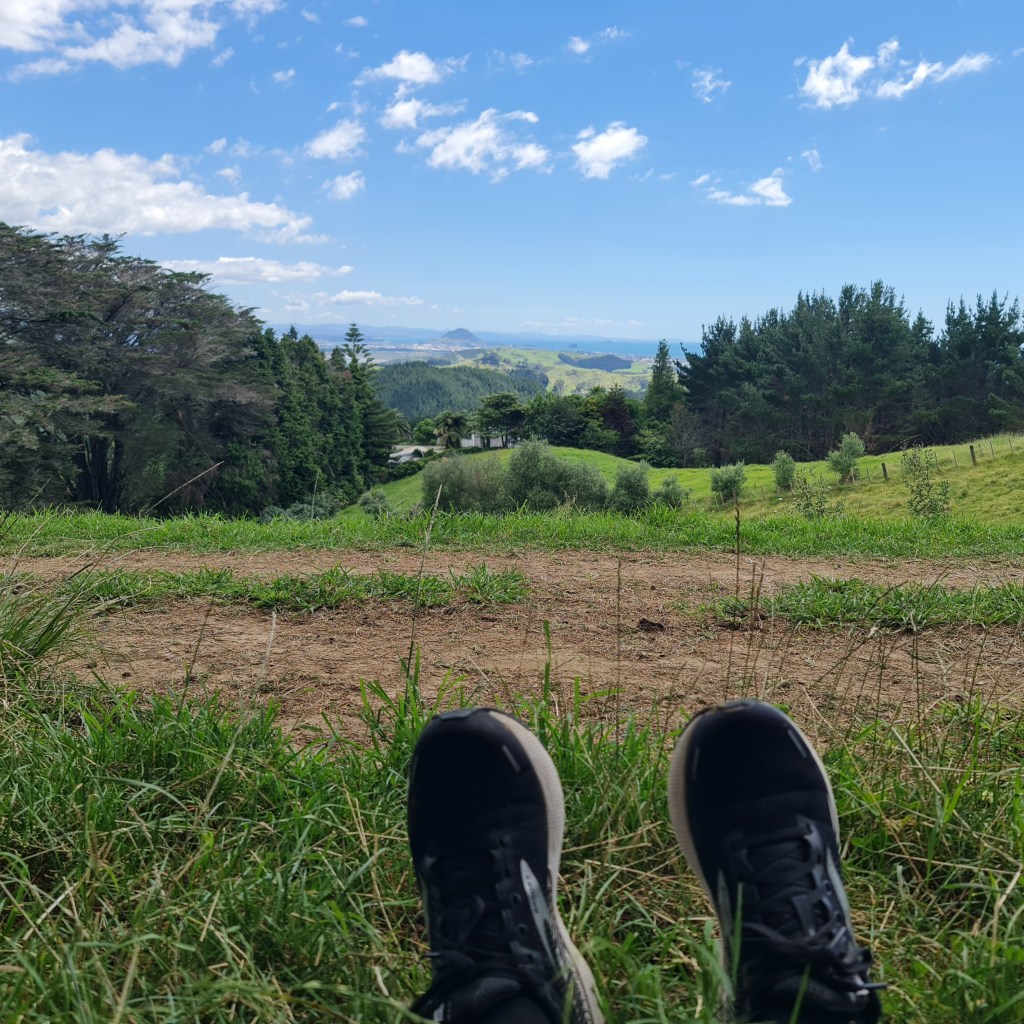 Instead of following the entirety of Ridgeline Track, we headed down Flying Mullet Track, which was not our best decision that day. If we had adorned a mullet, mine would’ve been flying parallel to the ground as my backside hit the ground on a slippery track. Oh well, no injuries occurred, and we eventually reached the roadside and retraced our steps with a short walk towards the Papamoa Hills to rest before heading home.