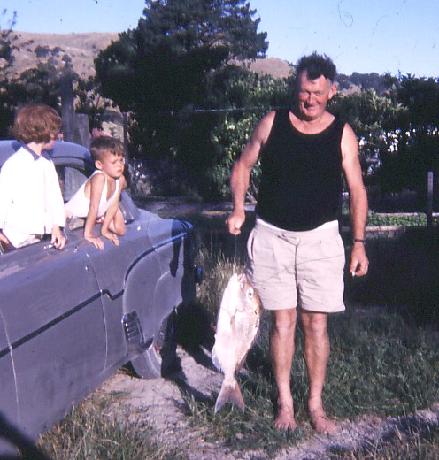 Kumara goes magnifically with snapper – Grandad with my brother and I hanging out – early 60s