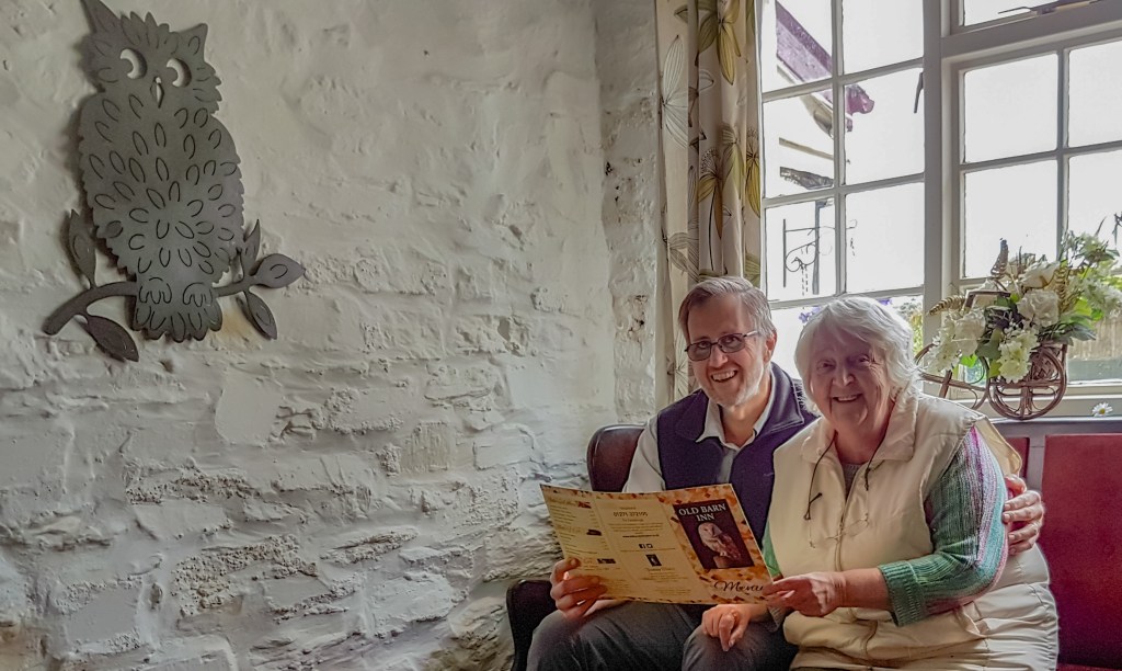 Les and Rosalie – Good times at the Old Barn Inn for a tasty Devon lunch. Keep smiling, Rosalie X