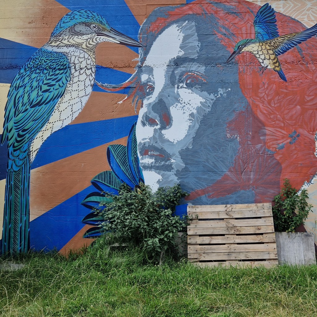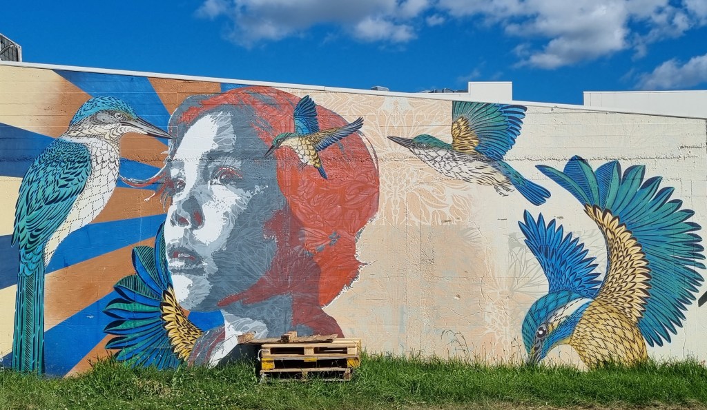 One street with a less than colourful name, Grey Street, is being transformed with a new mural – a slice of nature created by artist Lily Ivana. Her love of nature, recently seen through her child’s eyes, has renewed the magic and energy of nature. She has created a sense of calm with the recognisable bush track artwork.